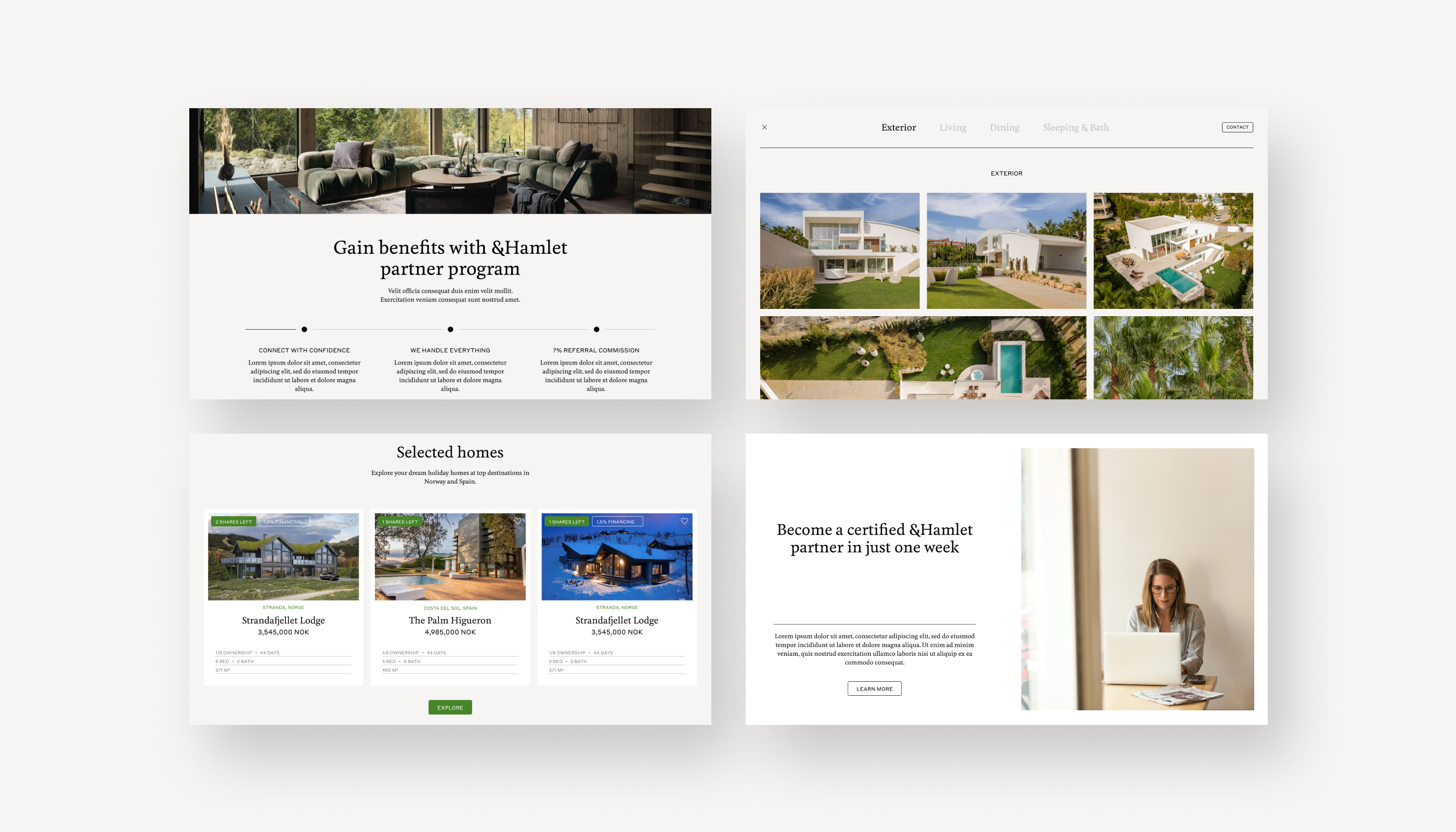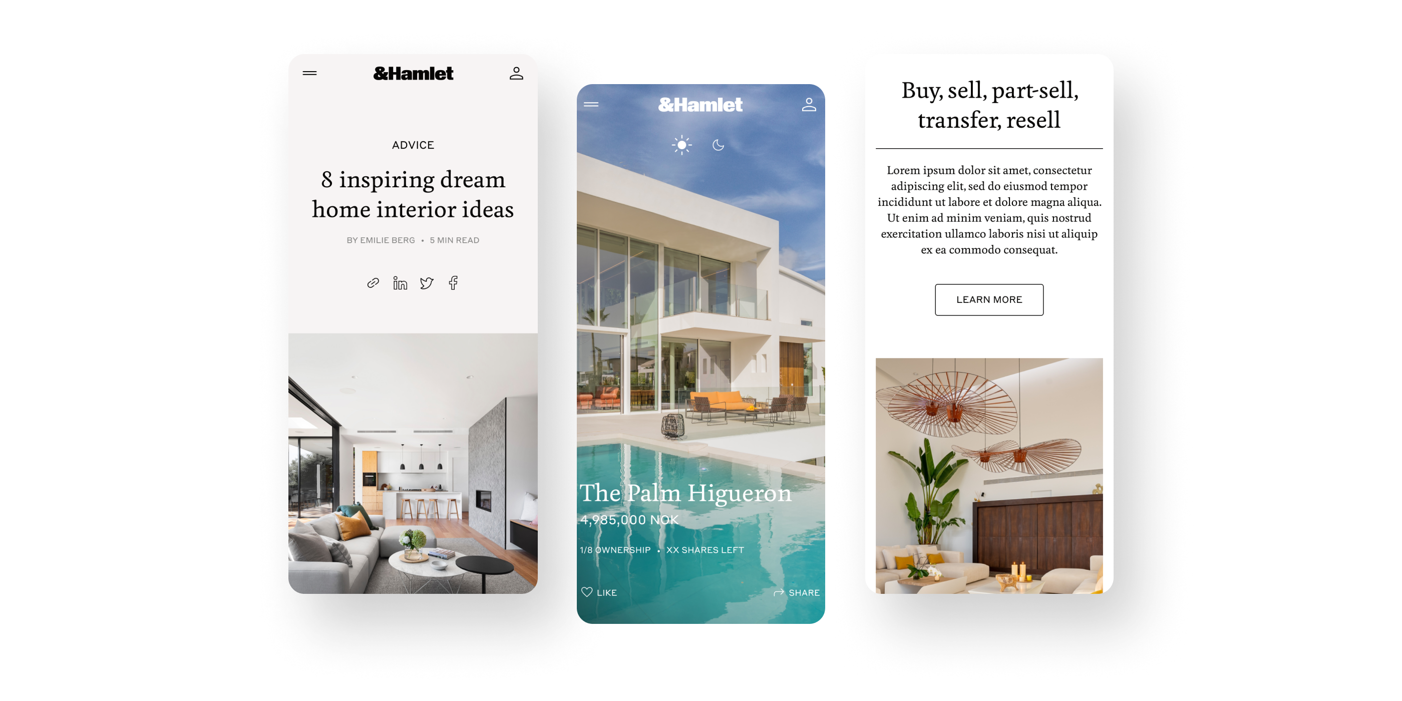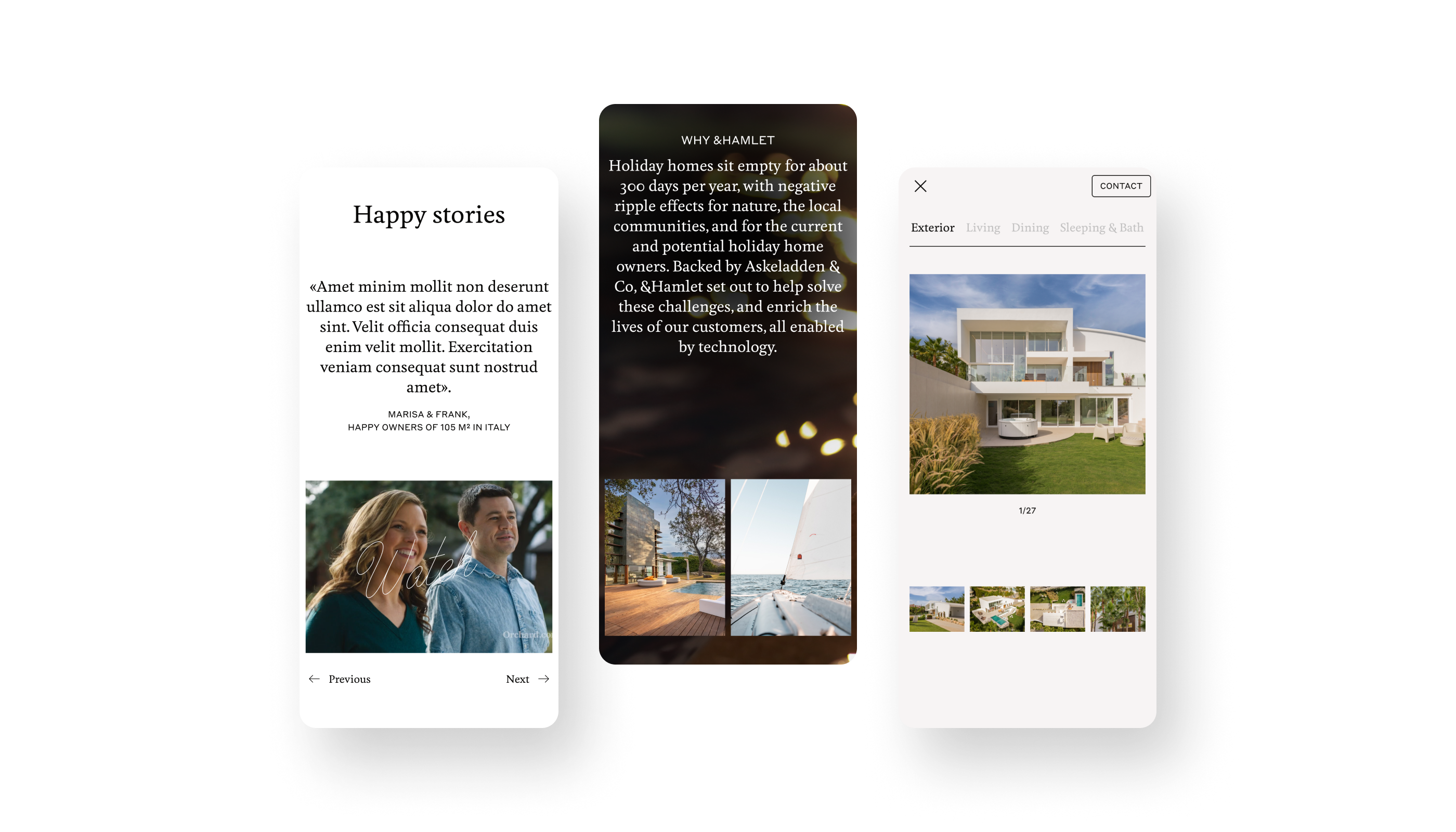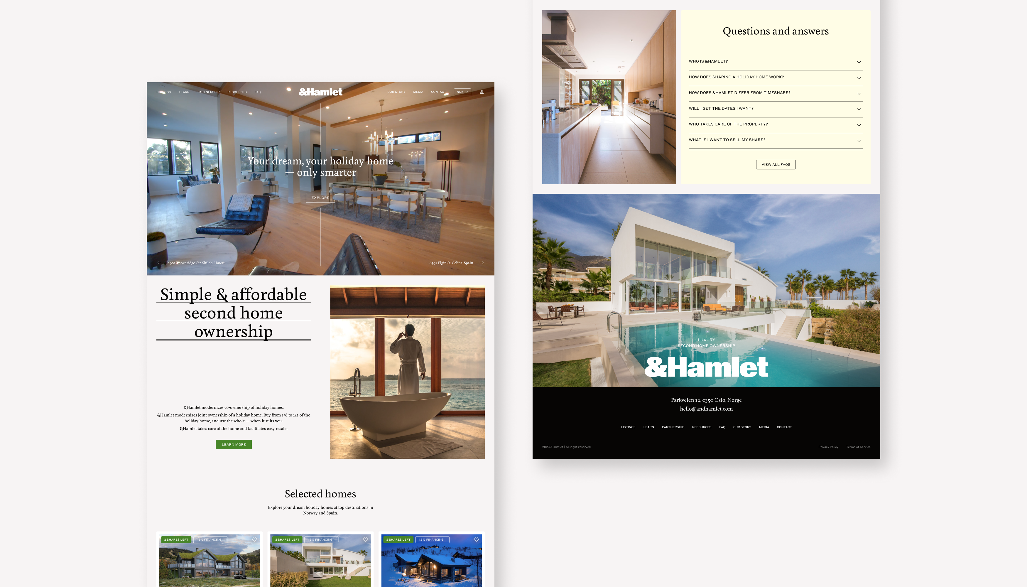 The solution entailed crafting a comprehensive design strategy, which included non-conventional layouts, meticulously curated typography, colors, and imagery, that resonated with &Hamlet’s existing brand identity. This design not only effectively communicated their unique co-ownership model but also provided an inviting, informative experience that encouraged users to explore the world of sustainable co-ownership with enthusiasm.