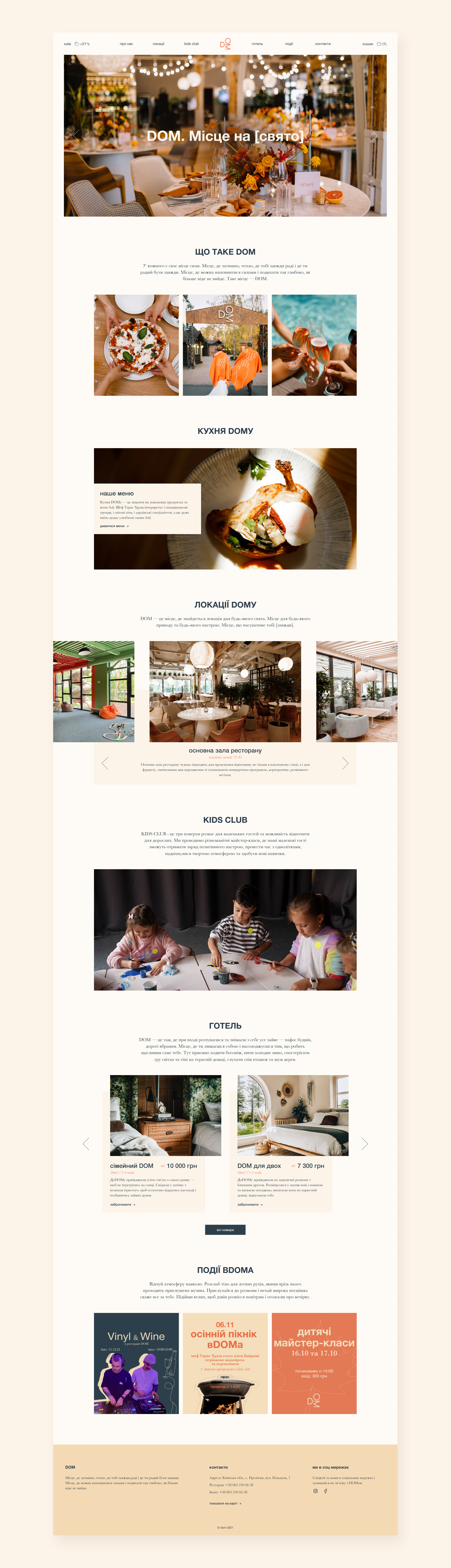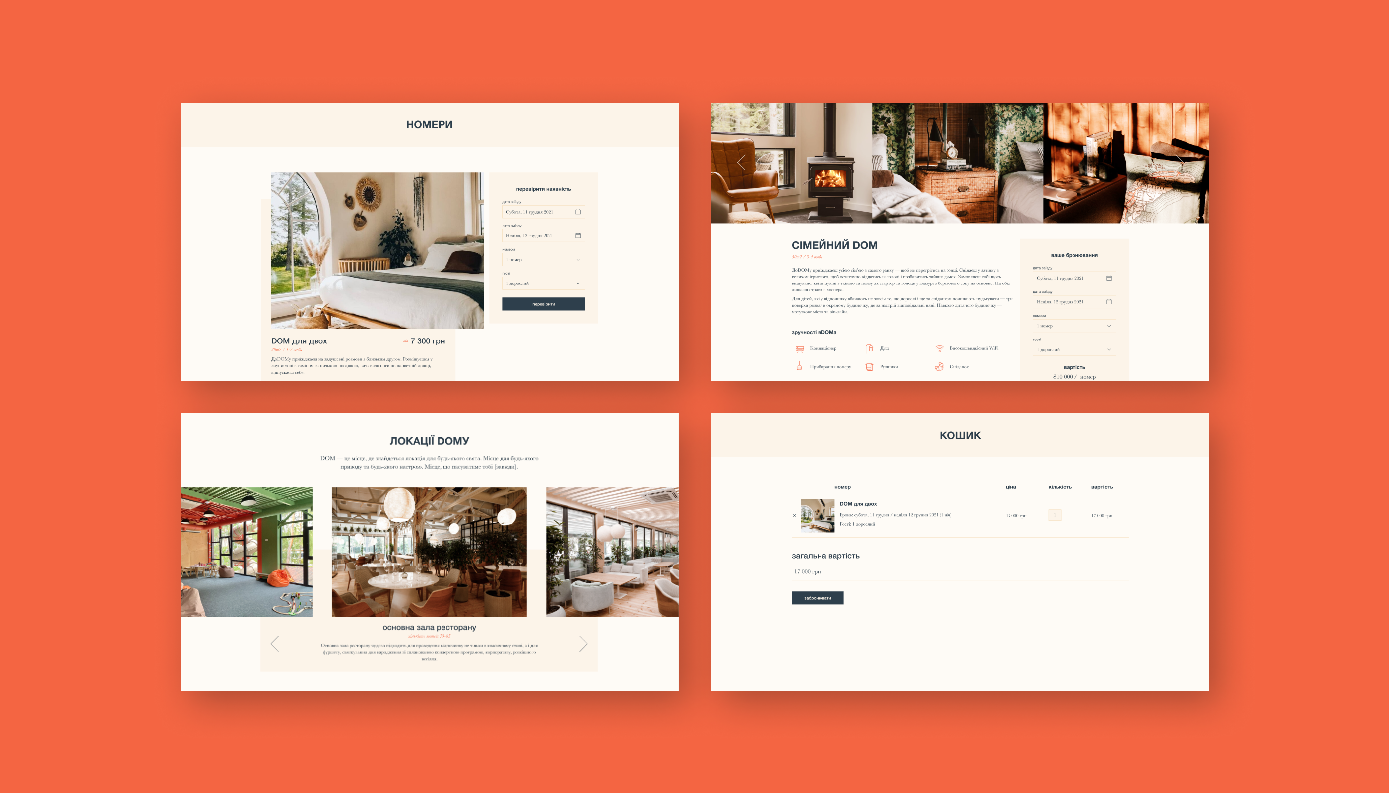 DOM, which translates to “home” in English, is a suburban family restaurant located in Kyiv, Ukraine. The challenge arose when they decided to provide accommodation services. Management realized that their existing internet presence was limited to social media, and there was no dedicated platform for clients to book rooms.