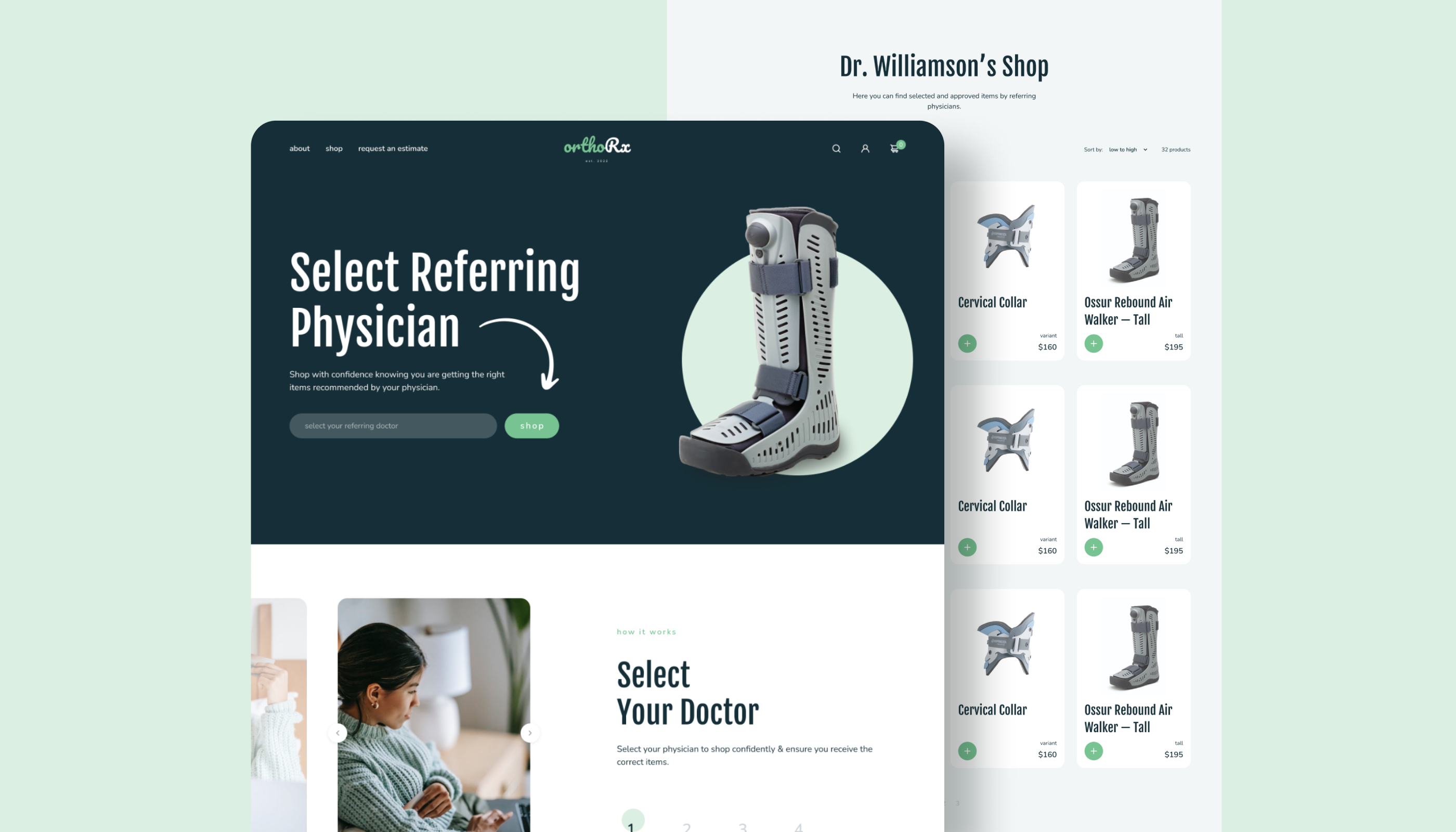 The solution involved a precise product categorization system based on doctor referrals, making it easy for users to find prescribed products. The design emphasized simplicity, directing users to take immediate action. Simultaneously, the website catered to those without a doctor, allowing easy exploration of the product list. This dual functionality ensured accessibility for both doctor-referred patients and independent seekers of rehabilitation products within the OrthoRx online experience.